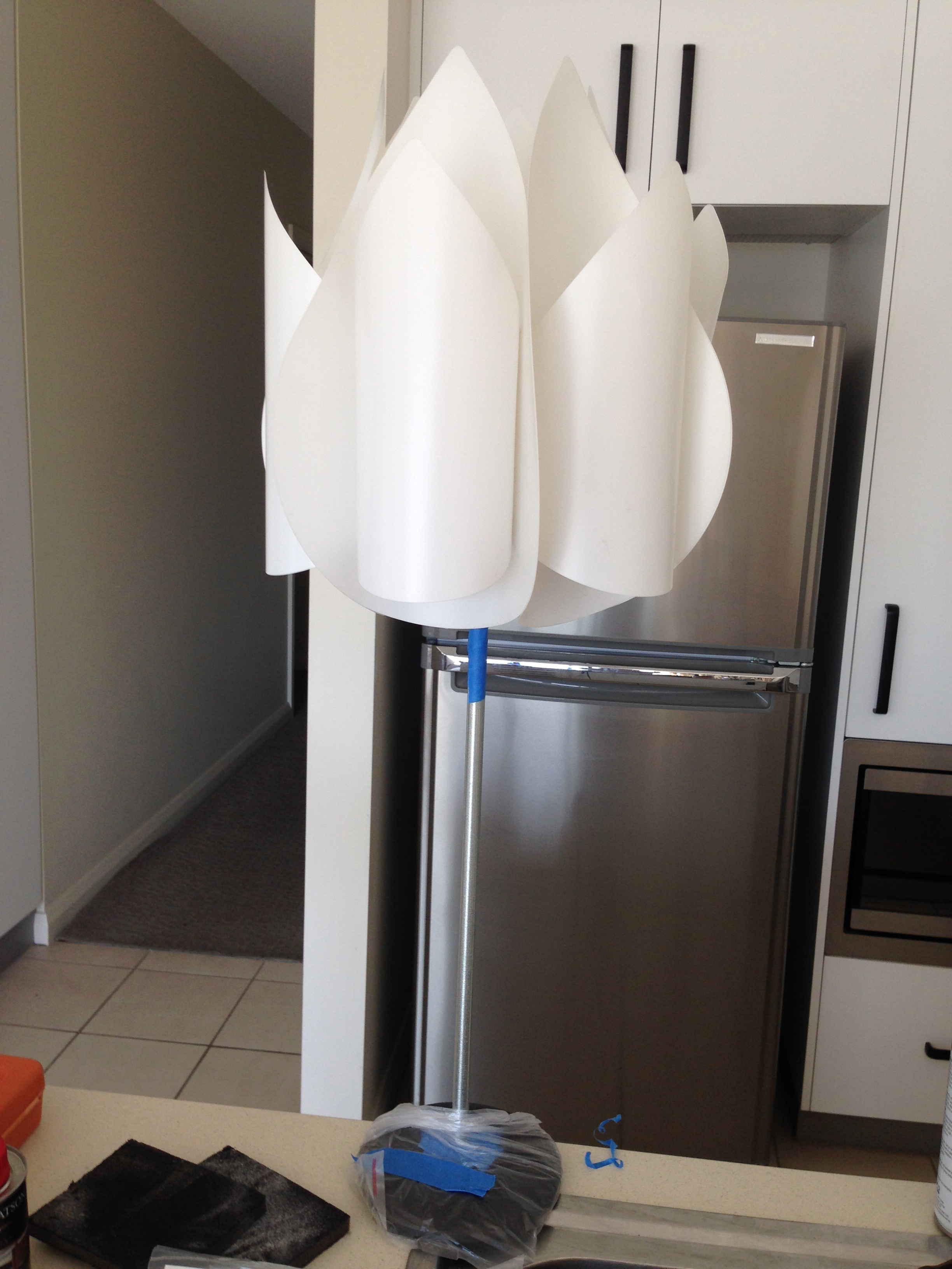 seat table (perhaps I was an afterthought after all?!). I guess the advantage of being the youngest is that I now have the wooden table top that survived years of cosy family dinners. But the table wasn’t quite right. The four matching wooden legs, particularly against the sideboard, were just, well, wooden. But I was in luck when I went to the tip shop (rubbish sale?) and found an incredibly ugly table, with an incredibly cool chrome sixties base. Fortunately I had one of my (many) monkey wrenches (see the black tap post) close at hand, and now I have the cool chrome sixties base sans the ugly laminate top. And it cost me $5. It took was some drilling and the screwing of screws to remove the wooden legs and fit the new sleek chrome base, but it fit perfectly.